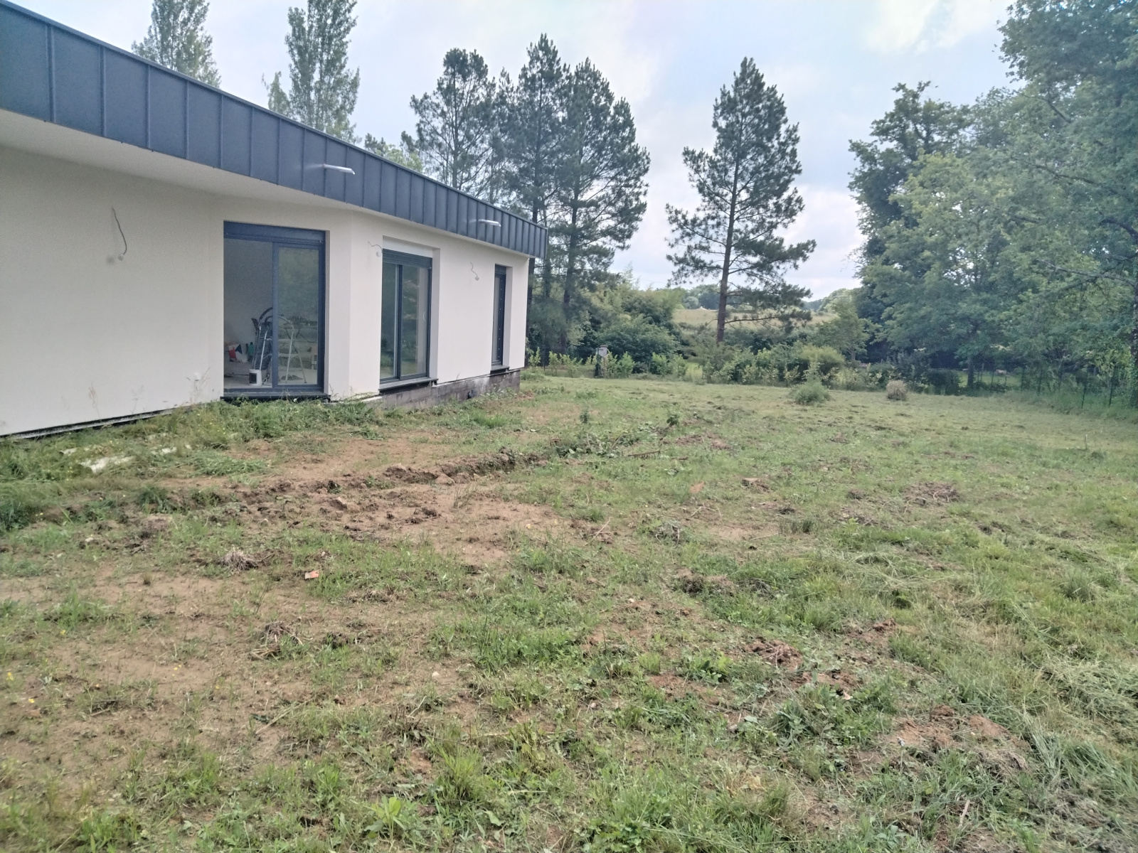 Maison d'habitation sur vide sanitaire, ossature bois, d'une superficie d'environ 115 m², comprenant une entrée avec placard, une cuisine ouverte à équiper, salon/salle à manger, trois chambres dont une suite parentale avec salle d'eau et dressing à équiper, une salle de bains avec douche, un wc, un double garage indépendant, l'ensemble édifié sur un terrain d'une contenance de 2000m².