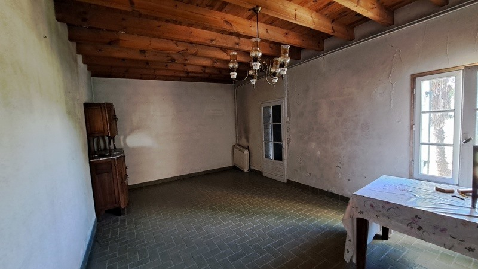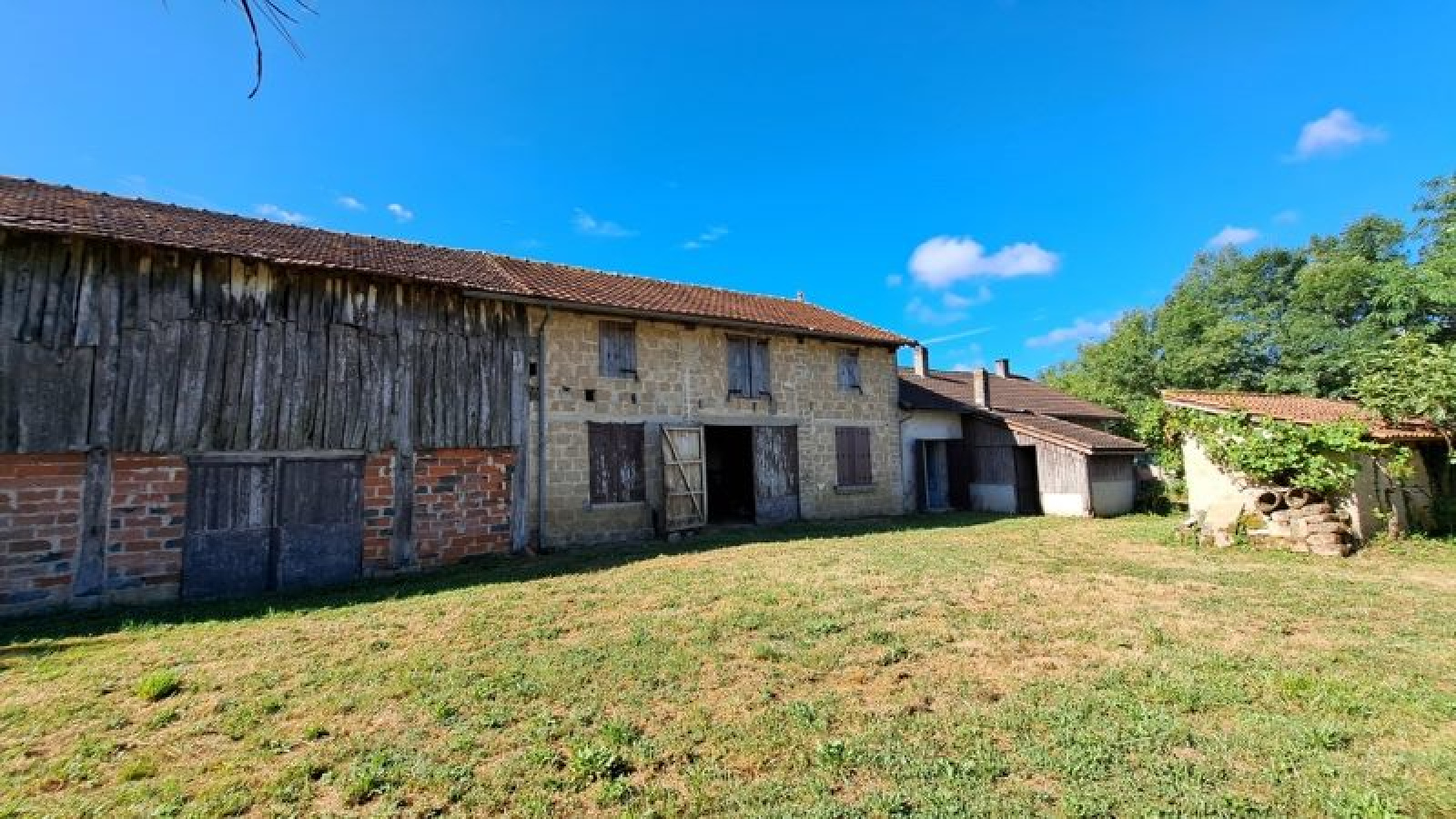 Maison à rénover d'une superficie d'environ 125 m², divisée en deux logements, comprenant cuisine avec cheminée, une pièce de vie avec cheminée, un dégagement, un wc, une salle d'eau, cellier, trois chambres, deux pièces, une grange attenante, parc à cochons, un carport, un puits, l'ensemble édifié sur un terrain d'une superficie de 1595.