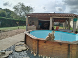Proche du bourg, jolie maison d'une superficie d'environ 99 m², mitoyenne d'un côté comprenant au rez de chaussée un salon/séjour avec poêle à granules, une cuisine ouverte, un cellier, un wc, à l'étage un palier desservant deux grandes chambres, une salle d'eau avec wc, un garage, une terrasse couverte, sur une parcelle de 854 m².